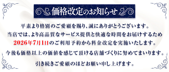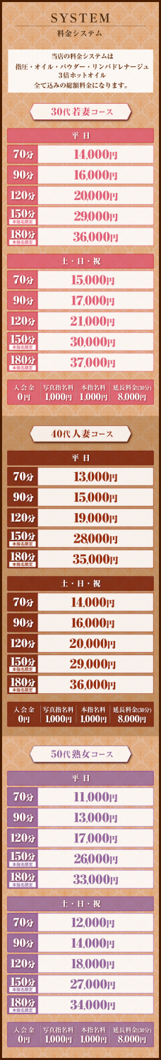 | 当店について | MADONNA(マドンナ)は【お姉さん、若妻、現役人妻、主婦、美熟女】を厳選採用した 30代40代50代専門の日本人エステサロンになります。 大人がオトナに癒される時代だからこそ、容姿だけでなく内面も美しいセラピストが多数在籍しております。 上質な空間と言葉を超えたきめ細やかなオイルマッサージで至福なひと時をご堪能ください。 |